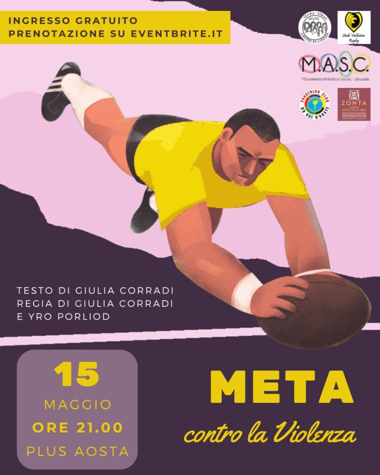 Giovedì 15 maggio 2025, alle ore 21, il teatro arena di Plus Aosta ha ospitato lo spettacolo teatrale META contro la violenza. La pièce, scritta dalla drammaturga Giulia Corradi dell’associazione Masc, nasce dalla collaborazione del Centro Donne contro la Violenza di Aosta e lo Stade valdôtain Rugby, con il supporto di altre associazioni locali come il Panathlon du Val d’Aoste…