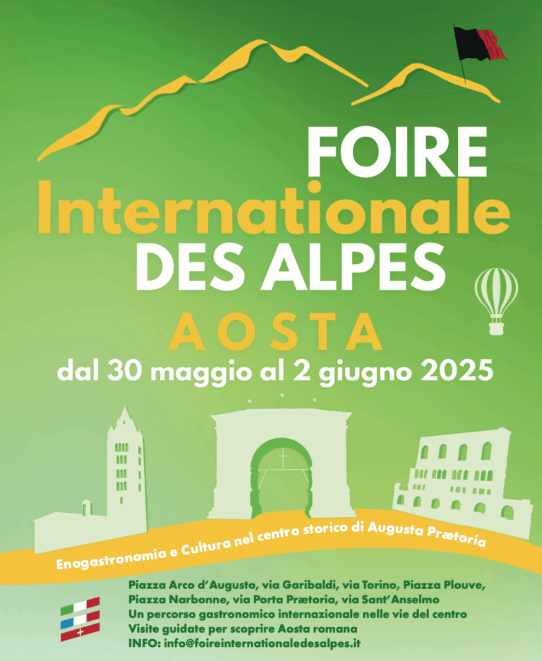 Dal venerdì 30 maggio a lunedì 2 giugno 2025, si svolgerà ad Aosta la Fiera Internazionale delle Alpi – Foire Internationale des Alpes. Durante i quattro giorni della Fiera, dalle 10.30 alle 24.00, il centro di Aosta accoglierà proposte enogastronomiche, con specialità provenienti da tutto il mondo. Due percorsi principali guideranno i visitatori attraverso il tessuto urbano della città: uno…