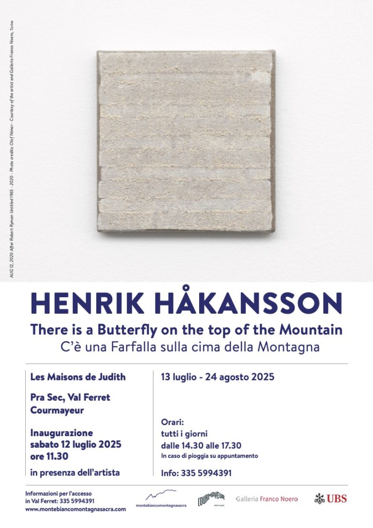 Da sabato 13 luglio 2025 a sabato 24 agosto 2024 si svolgerà in Val Ferret, a Courmayeur, la mostra personale There is a Butterfly on the top of the Mountain – C’è una Farfalla sulla cima della Montagna di Henrik Håkansson, artista svedese noto per le sue opere in dialogo con la natura e il paesaggio. L’evento è promosso dall’Associazione…