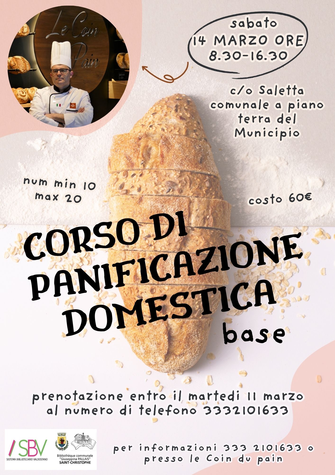 Sabato 14 marzo 2026 dalle 8.30 alle 16.30 nella saletta comunale del municipio, Christian Trione sosterrà il corso di panificazione domestica base. Iscrizioni e informazioni 333 2101633.
