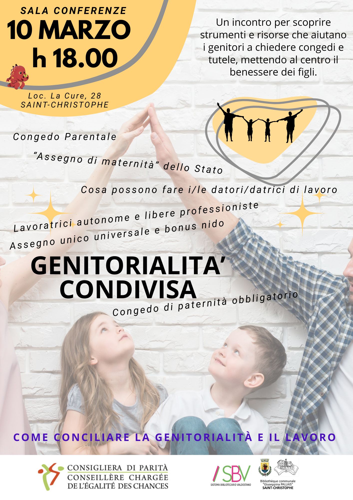 Martedì 10 marzo 2026 alle ore 18, nella sala conferenze si svolgerà l’incontro Genitorialità condivisa con la consigliera di parità Katja Foletto per parlare di strumenti e risorse che aiutano i genitori a chiedere congedi e tutele, mettendo al centro il benessere dei figli.