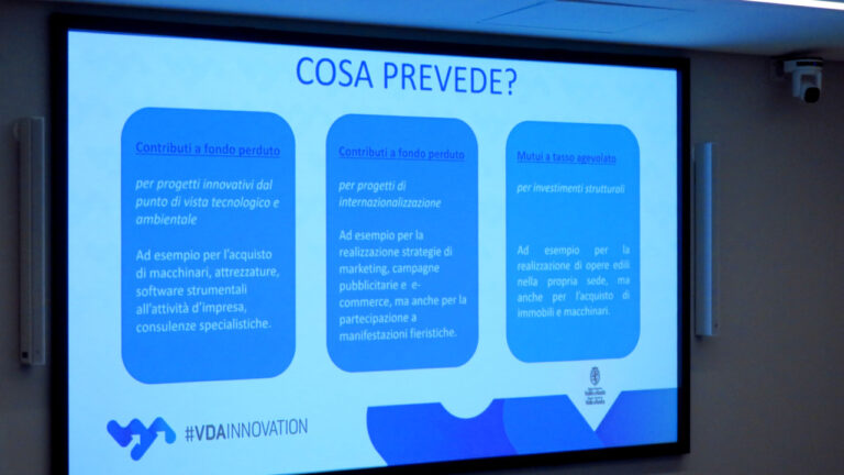 Le informazioni sulle diverse agevolazioni sono reperibili anche sul nuovo sito vdainnovation.it, che definisce un marchio comunicatico comune, nel solco di vdalavora e vdatransports, con l’obiettivo di raccoglire sotto un’unica identità visiva le politiche per ricerca, energia e aiuti alle imprese.