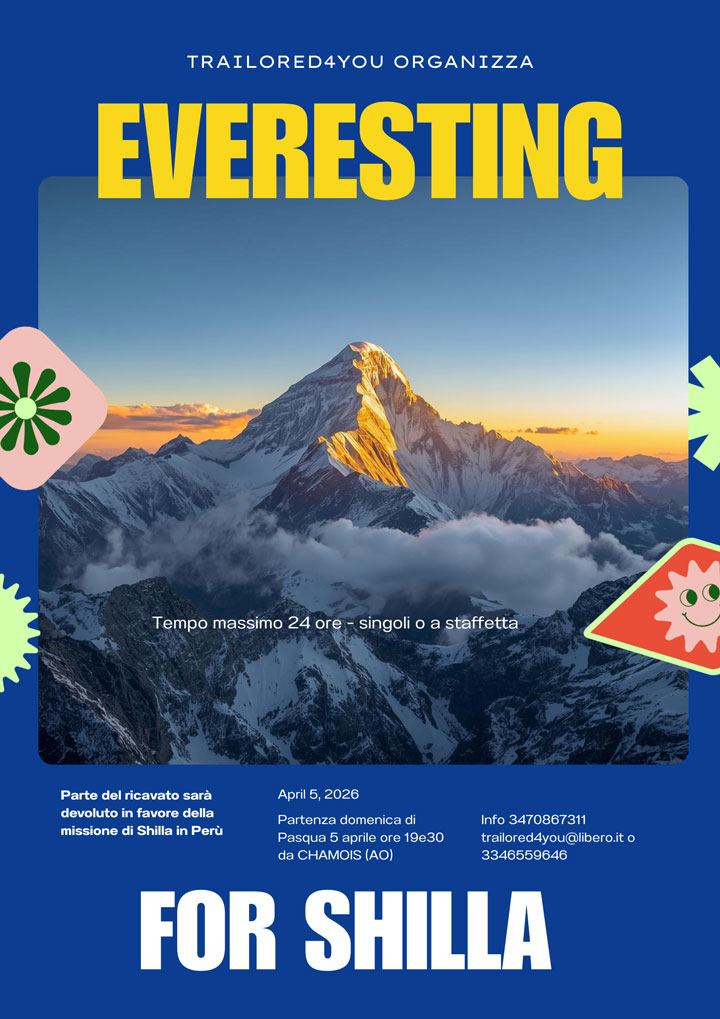Domanica 5 aprile dalle ore 19.15, si svolgerà l’allenamento collettivo non competitivo Everesting 4 Shilla. L’evento sfida i partecipanti a percorrere un circuito di 8 km con 1.100 metri di dislivello positivo per accumulare un’altitudine complessiva pari a quella dell’Everest. La finalità della manifestazione è benefica, con il ricavato delle iscrizioni (effettuabili su wedosport.net) devoluto alla missione di Shilla in Perù.