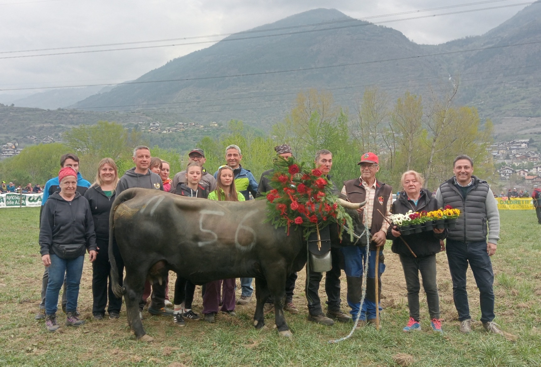 L’Arena di Gignod, in località Buthier, ha ospitato domenica 19 aprile 2026 la quarta eliminatoria primaverile del 69esimo Concours régional Batailles de Reines. L’appuntamento ha visto la partecipazione di 148, di cui 139 scese in campo, suddivise in 29 di prima categoria, 48 di seconda e 62 di terza. Il titolo della regina del peso titolo a Caprice (810 kg), di Livio Pervier di Aosta.